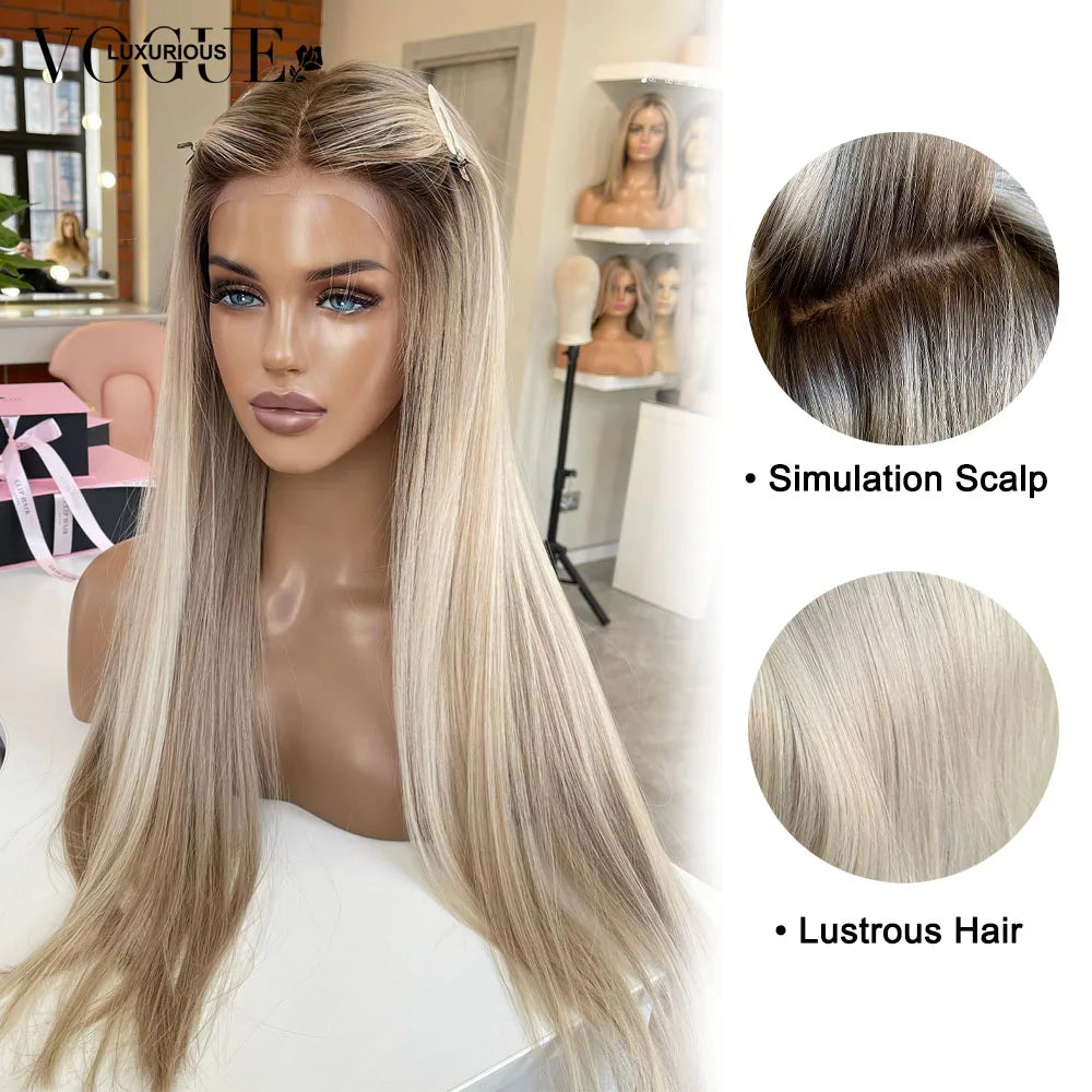 Cream Blonde Straight 100% Real Human Hair Wig Ash Blonde 200% Density Salon Hair Coloring Wig 13x6 Lace Front Wig For Women